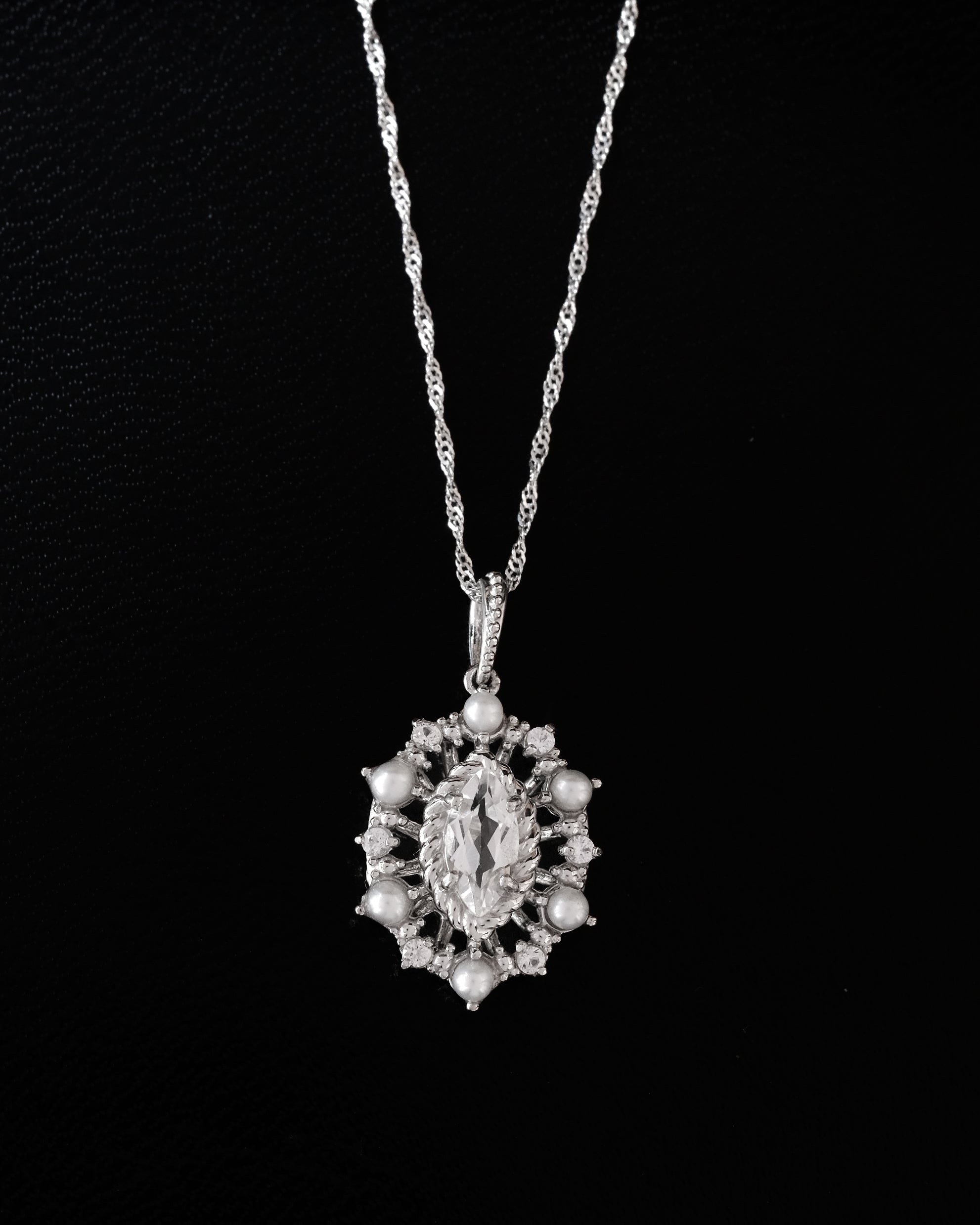 中心に輝く星、その響きを受けとめるように周囲で静かに光る真珠や天然石。