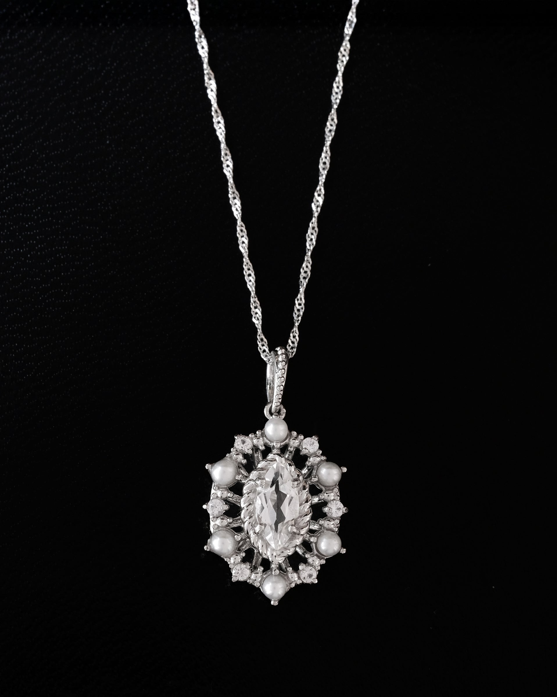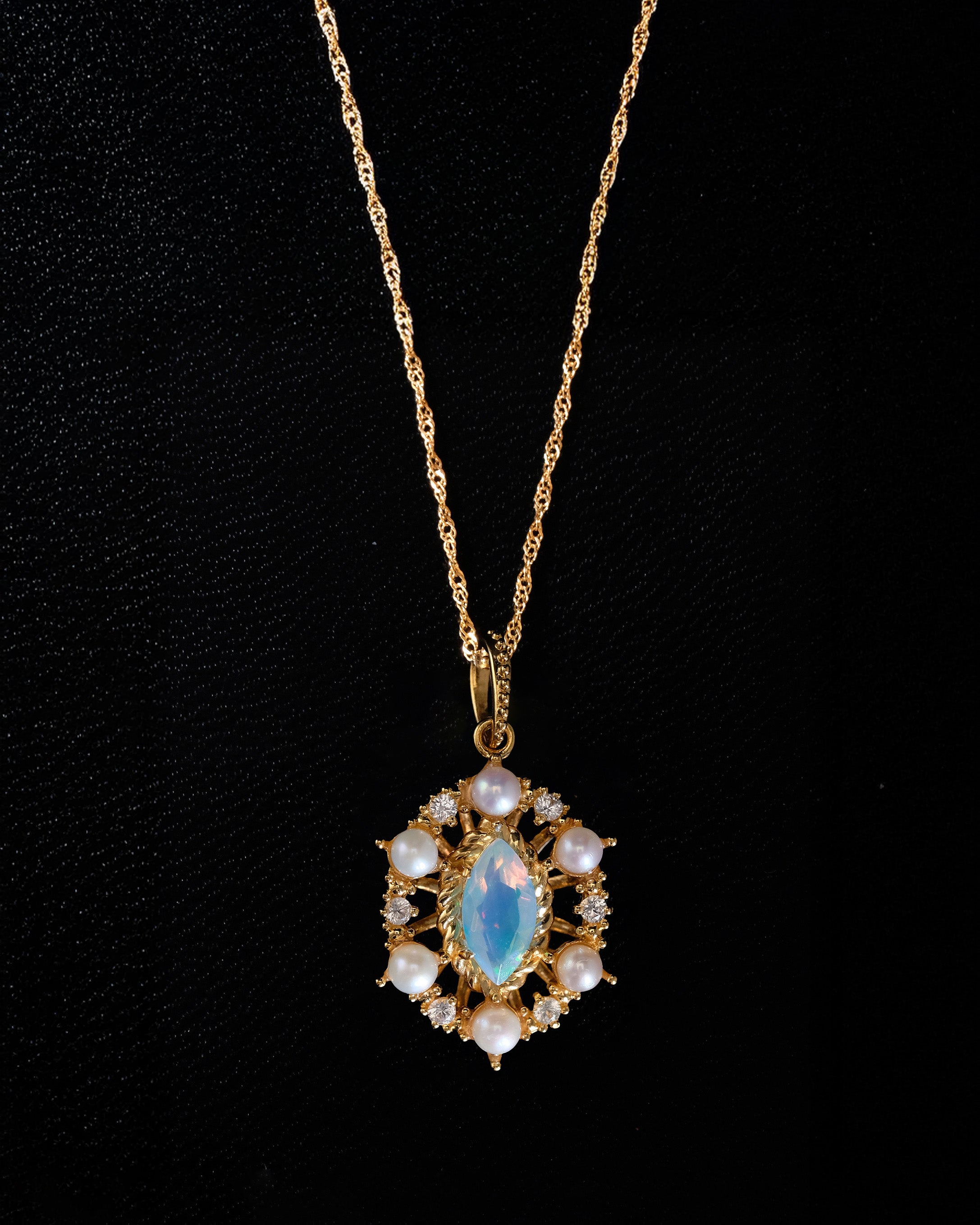 中心に輝く星、その響きを受けとめるように周囲で静かに光る真珠や天然石。