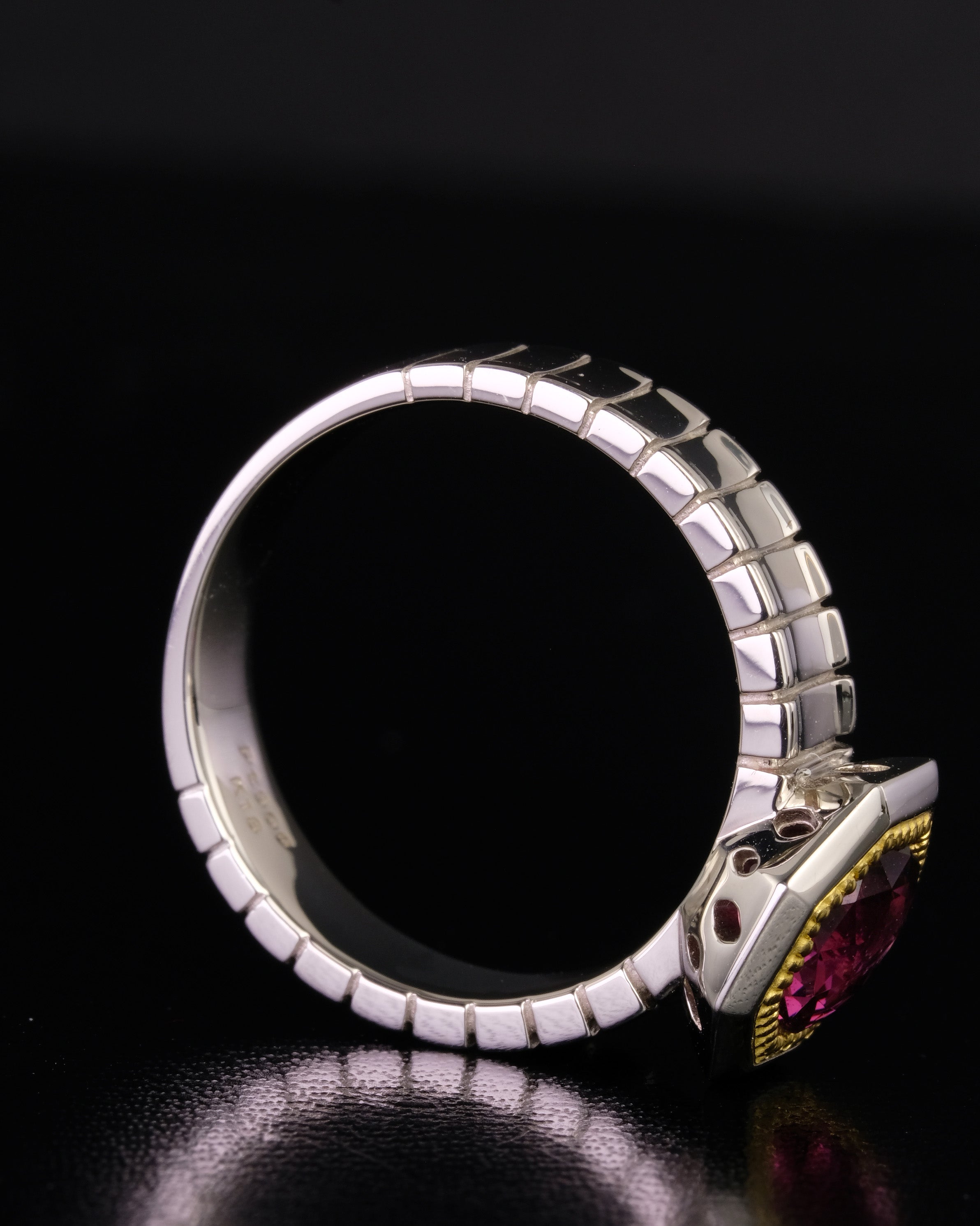 The gold milgrain in the center emits a beautiful light, and the combination with platinum further enhances its presence.