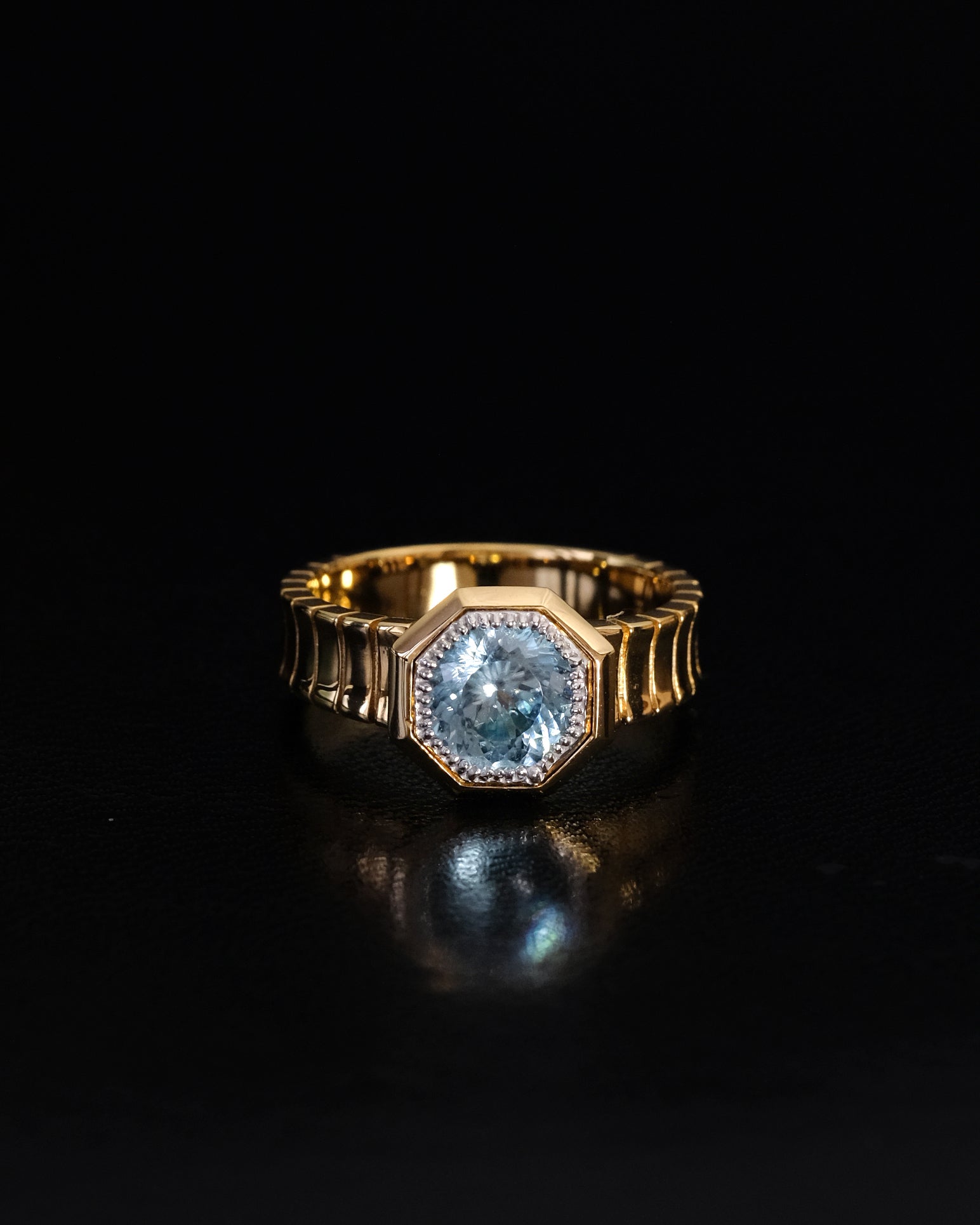 "Octarion" Bright Brilliant Cut™ 2.38ct Blue Zircon Ring [Singular Edition] #13 / オクタリオン リング